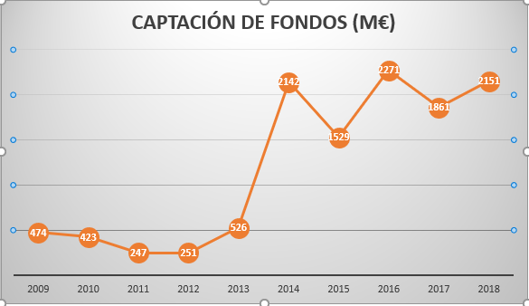 El presente 2019 se enmarca como un ejercicio en el que las cifras de captación de fondos pueden llegar a superar el histórico resultado registrado en 2016, de casi 2.271 millones de euros, gracias a casi los 600 millones de euros comprometidos por una de las firmas gestoras de capital.