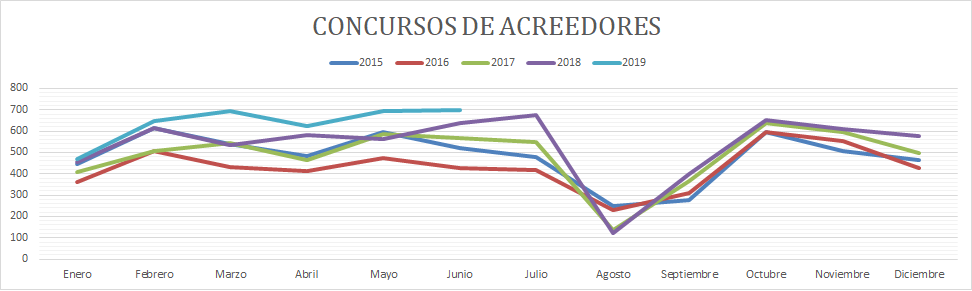 El mes de junio modera el crecimiento de los concursos de acreedores al experimentar un alza de un 0.87% respecto al mes de mayo.