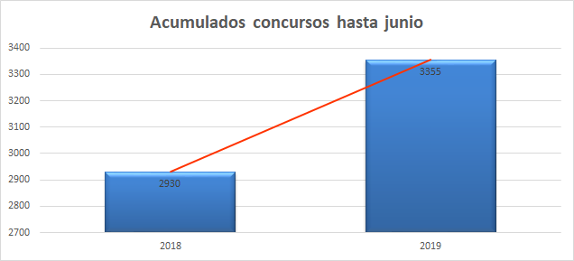 Un 14.50% más de concursos de acreedores en el 2019 respecto del 2018.