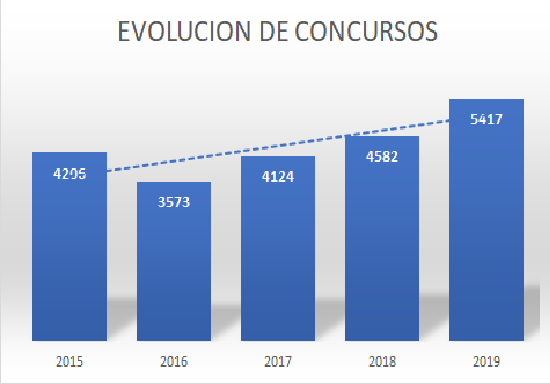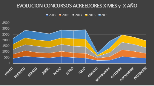 Más abajo podemos apreciar el acumulado de los concursos de acreedores publicados por años.