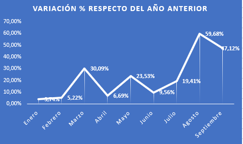 El mes de septiembre vuelve a ser un mes donde los concursos de acreedores se incrementaron un 47.12% respecto del mismo mes del año anterior, siendo diez, los meses consecutivos de incremento.