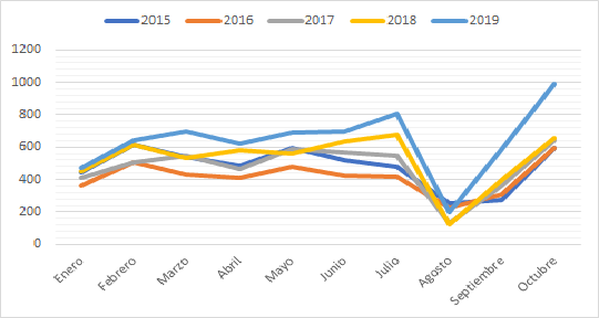 La publicación de los concursos de acreedores en cualquier mes del 2019, superan a cualquiera de su mismo mes de los últimos 4 años.