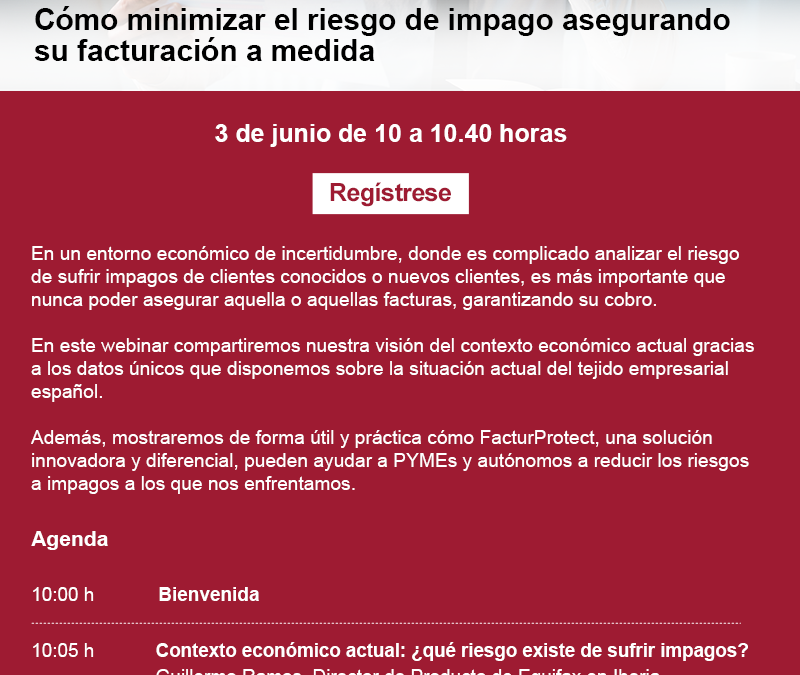 En un entorno de incertidumbre económico, donde es complicado analizar el riesgo de sufrir impagos de clientes, es más importante que nunca poder asegurar el cobro de las facturas. El próximo 3/06, rating empresarial participa junto a Equifax y Ores&Bryan, en la...