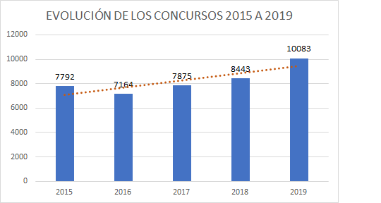 Un 19.42% es el incrementó que el 2019 ha experimentado respecto del 2018, en relación a la publicación de los concursos de acreedores y acuerdos de homologación judicial de deudas, en total han sido 10.083 publicaciones